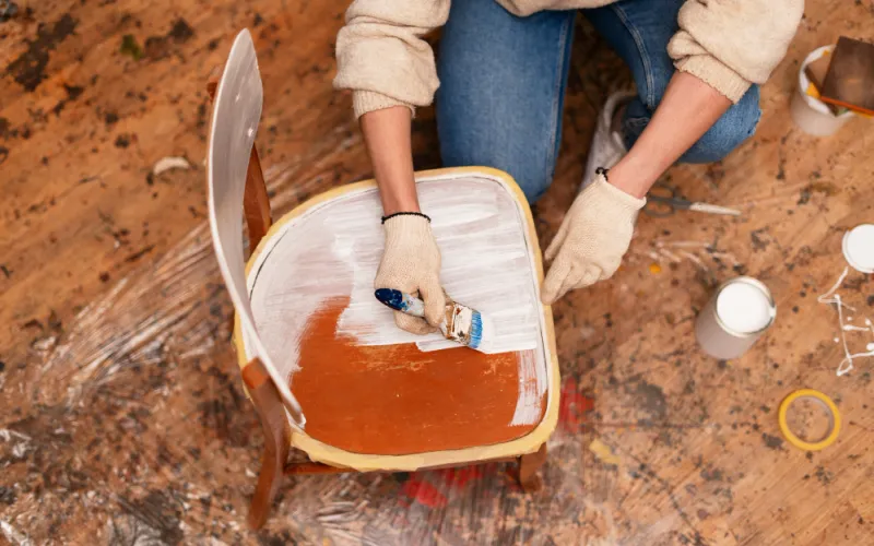 - Acabamento: Após a secagem final (idealmente 24 horas), a anilina precisa ser “selada”. Aplique um verniz, seladora, cera ou óleo para proteger a cor e dar o acabamento final.